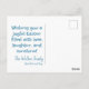 Célébrez la beauté de la saison avec cette carte postale élégante, conçue pour diffuser la joie de Pâques. L'avant présente une charmante illustration vectorielle d'oeufs de Pâques de couleur pastel nichés parmi des fleurs sauvages délicats, créant une scène printanière douce et accueillante. La palette de couleurs douces apporte une touche fraîche et joyeuse, parfaite pour les voeux de Pâques. Sur le dos, un arrière - plan bleu pastel serein vient compléter le design avant. Le message du coeur est centré sur une police blanche amusante et ludique : "Vous souhaite une Pâques joyeuse remplie d'amour, de rire et de soleil !" Ci-dessous, deux lignes personnalisables offrent de l'espace pour une signature de famille et un slogan, rendant chaque carte unique. L'accueil peut également être customisé, en s'assurant que vos souhaits de Pâques sont partagés comme vous le souhaitez. Avec son mélange de chaleur, de charme et de personnalisation, cette carte est le moyen idéal pour égayer Pâques et célébrer les joies du printemps !