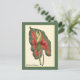 Une carte postale d'art raffiné du Curtis Botanical Magazine présentant une illustration numérique améliorée d'une feuille de Caladium rouge et verte vibrante.