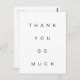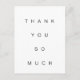 Carte postale simple merci beaucoup. Typographie noire moderne en grande police fine. Message pré-écrit au verso qui peut être personnalisé.