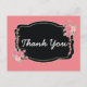 Merci à vos invités d'avoir assisté à votre occasion spéciale avec cette belle carte postale de remerciement rose. Cette carte présente un beau design floral rose et noir avec les mots "Merci" écrits au milieu. Oeuvre créée par : AMBillustrations http://www.etsy.com/shop/AMBillustrations/
