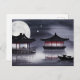 AI création d'un lave-linge chinois traditionnel avec une pleine lune derrière des pavillons et un bateau.