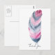 Carte Postale Plume bohème rose gris aquarelle Merci