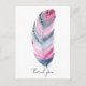 Magnifique dessin de plume bohème rose et gris à l'aquarelle. Carte de remerciement simple adaptée à toutes les occasions.