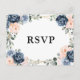 Carte postale RSVP bleu floral Dusty avec d'élégants bouquets de marine / bleu Dusty, blanc, roux, rose pêche et sauge vert eucalyptus feuilles et élégant cadre géométrique neutre parties scintillant. Veuillez me contacter pour toute aide sur la personnalisation ou si vous avez besoin d'un autre produit avec ce design.