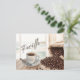 Une carte postale de charme aquarelle avec une scène cosy d'un pocillo traditionnel, une petite tasse de café, reposant sur une table en bois rustique. A côté, un sac de burlap de grains de café fraîchement rôtis s'ouvre, leur arôme riche est presque palpable. Dans l'arrière - plan, les teintes douces d'une vue paisible sur la plage, avec des vagues douces et un ciel bleu vif, créent une atmosphère tropicale sereine. Le mélange du café chaud et du cadre balnéaire apaisant évoque un moment de détente et de charme portoricain.