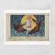 Cette carte postale est la reproduction d'une carte postale vintage d'Halloween qui présente un poème, des diables et des chauves-souris.