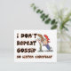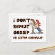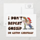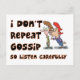 Un regard humoristique sur les commérages. Un dessin de deux dames. L'un chuchote dans les autres oreilles. Les mots Je ne répète pas les commérages Alors écoutez attentivement les entoure.