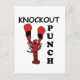 Carte Postale Knockout Punch pour la boxe de homard conçue par Nisha Prabhu. Illustration de homard rouge dans l'emballage à la main avec le texte ''Knockout Punch''. Envoyez un punch amusant avec notre carte postale Lobster Boxing Knockout Punch ! Ce design ludique comprend une langouste déterminée qui lance un punch d'assaut, ce qui en fait une façon unique et attrayante d'envoyer vos salutations ou vos souhaits bien. Que vous soyez passionné de boxe ou que vous aimiez simplement la vie marine, cette carte postale vous fera certainement vibrer et apportera un sourire au visage du récipiendaire. Partagez un peu d'esprit combatif et d'humour avec cette carte postale amusante et mémorable!