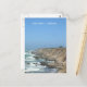 Pointe Arena, Californie carte postale montrant les vagues se brisant sur les rochers et phare à l'horizon.