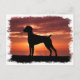 Votre race préférée de chien silhouetté par un somptueux coucher de soleil Pacifique en sienne.