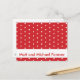Ajoutez votre propre texte dans n'importe quelle couleur qui fonctionnera. Nous offrons ce design de pois en tonnes de combinaisons de couleurs comme le noir et blanc, la moutarde et le blanc, le rose et le brun, le rouge et le blanc, et même le bleu d'oeuf des robins ! Les points sont si mignons et si tendance ! Excellent pour les cartes Save the Date, les invitations à la douche ou les annonces de fiançailles.