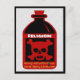 Bouteille avec crâne et os croisés dit "Religion" et sous "avertissement : l'usage habituel provoque la haine, l'intolérance et une guerre sans fin."