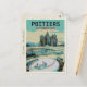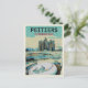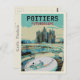 Pour tous les Poitiers et les amoureux du Futuroscope ou pour ceux qui aiment partager leurs voyages avec leurs amis. Carte postale rétro avec vue sur le parc du Futuroscope, illustration France.