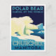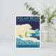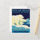 Send a unique piece of Canadian wildlife art with this postcard! Inspired by classic mid-century travel posters, it features a beautiful illustration of a polar bear family—a mother, a cub, and another adult—standing on the ice against a dark, arctic sky.