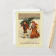 Conçu par Susan Epps Oliver. Image vintage de Noël de deux enfants marchant à travers la neige. Le garçon porte un sapin de Noël et la fille un panier rempli de pommes rouges brillantes. Leur message est "Un joyeux Noël pour vous".