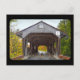 Power House Covered Bridge, Vermont Postcard "Power House Covered Bridge" de Catherine Sherman. Le Pont couvert Power House est montré ici situé parmi le feuillage d'automne lumineux. Également connu sous le nom de pont couvert de la rue School, le pont, construit en 1872, traverse la rivière Gihon au large de la route nationale 100C à Johnson, dans le Vermont. Il a été inscrit au Registre national des lieux historiques en 1974. Le nom du pont provient d'une centrale hydroélectrique obsolète située juste en amont, mais des fils électriques circulent encore près du pont. Le bâtisseur de ce pont de la conception de truss de poste Queen est inconnu. En 1960, des réparations mineures ont été effectuées aux culées, aux abords et au plancher. En 1995, il a été recommandé de renforcer le tablier en raison du grand nombre de camions qui utilisent la route comme coupe courte. Des poutres en acier I ont été installées en dessous. En 2000, le pont a été détruit par une lourde charge de neige. Le toit s'est effondré et les murs latéraux sont tombés vers l'extérieur dans la rivière en contrebas. Grâce à l'installation des poutres en acier I, le pont était autonome et a survécu. Des garde-corps ont été posés sur les côtés du pont pour garder le pont ouvert pendant que son sort a été décidé. En 2002, le pont a été reconstruit et rouvert le 29 juin 2002. Les camions ne sont plus autorisés sur ce pont à une voie, l'un des nombreux ponts à une voie de la Nouvelle-Angleterre.