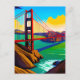 Carte postale dans une illustration du pont Golden Gate, San Francisco, sur un ciel à l'aube