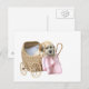 Poodle mixer chien dans un vieux mode de l'osier chariot bébé photo carte postale. Idéal pour les invitations à la douche bébé ou les cartes cadeaux, le gardien d'animaux vous remercie ou appréciation etc. Plusieurs chiens et plusieurs poses sont disponibles.