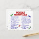 Créez un rire ou deux avec nos cadeaux, t-shirts, tee - shirts, vêtements et marchandises de Poodle Property Lows humoristiques. Ces règles drôles, et oh si vrai, de chien sont sûr d'être un succès avec n'importe quel propriétaire de caniche. Faites une idée cadeau idéale pour ce Poodle Lover difficile à obtenir sur votre liste!