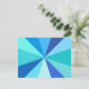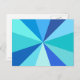 Ce design de carte postale pop art branché et rétro des années 60 a des rayons/soleil psychédéliques et bleus virevoltants dans un motif géométrique. Ce design branché, minimaliste et ultra-moderne comporte douze rayons dans différentes nuances de bleu néon. C'est super, bébé.
