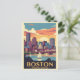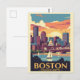 N'importe qui aimerait recevoir cette carte postale de voyage vintage avec une illustration rétro de la ligne d'horizon de la ville et des voiliers dans le port de Boston, Massachusetts!