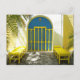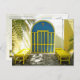 Carte Postale Porte bleue décorée avec banquettes jaunes