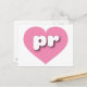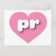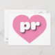 Cette carte postale est dotée d'un coeur rose cool et calme contenant les lettres coques inférieures en blanc, arrondies et audacieuses pr, une version ludique de l'abréviation de Porto Rico, l'île enchantée.