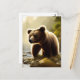 Carte postale pour les amoureux de la nature, avec l'IA généré peinture numérique d'un bel ours brun dans un ruisseau de montagne.