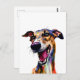 Carte Postale Portrait élégant de Galgo avec une Pop de couleur