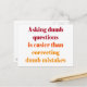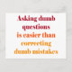 Regardons la vérité : il y a une question stupide. Mais la question la plus stupide du monde est encore meilleure qu'une erreur stupide. Lit "Poser des questions stupides est plus facile que de corriger des erreurs stupides."