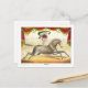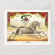 Cette carte postale présente une reproduction d'une affiche publicitaire de cirque vintage comportant un numéro de cheval avec des foulards.