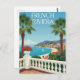 Découvrez le glamour intemporel de la Côte d'Azur avec cette carte postale de style vintage. Les oeuvres d'art offrent une vue imprenable sur une plage en forme de croissant, avec de charmantes villas côtières et un village pittoresque niché sur les collines. Encadré de palmiers classiques et d'un beau balcon, ce design stylisé évoque l'âge d'or du voyage. Parfait pour un souvenir de vacances, une note à un ami, ou comme une belle pièce d'art rétro murale.