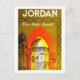 Cette carte postale est une reproduction d'une affiche de voyage vintage faisant la publicité de la Jordanie, "la Terre Sainte".