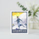 Cette carte postale est une reproduction d'une affiche de voyage vintage faisant la publicité de sports d'hiver comme le patinage sur glace à Chamonix, France.