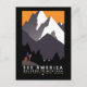 Poster pour United States Travel Bureau faisant la promotion du voyage au Montana, montrant la scène de montagne avec cheval et cavalier. Extrait de la collection d'affiches de l'APM à la Bibliothèque du Congrès.