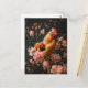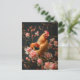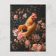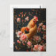 Carte Postale Poulet entouré de fleurs roses