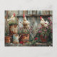 Carte Postale Poulets Rustique Arrosoir Seau en Étain Fleurs
