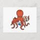 Carte Postale Poulpe en peintre avec peinture et pinceau
