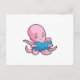 Très jolie carte du Lapin toujours pressé d'Alice . Belle qualité de l'impression en rose pastel.