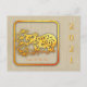 Papier chinois d'or coupé d'un Ox dans un carré avec le même design en noir pour créer de l'ombre portée. Conception sur les vacances horizontales carte postale avec bistre traditionnel papier fait main - fait au Vietnam - (image imprimée) comme arrière - plan (avant et à l'intérieur de la carte). Carte de voeux, invitation, fournitures artisanales, matériel de fête et plus encore... Parfait pour le Nouvel An chinois ou vietnamien de l'Ox 2021.