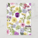 Carte postale pour un thème de shower de bébé Little Wildflower Is On Her Way ou Baby In Bloom. Joli design floral avec des marguerites, des fougères, des pensées et d'autres fleurs sauvages dispersées dans une couleur pastel douce, design tout autour. Recherchez "Wildflowers" dans ma boutique pour trouver des articles coordonnés.