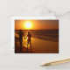 Silhouette d'un couple de jeunes mariés aimant en lune de miel marchant le long de la plage au coucher du soleil, le reste de leur vie. Cartes de correspondance, cartes postales et timbres-poste en trois tailles disponibles.