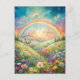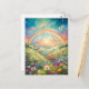 Carte Postale Pré aux fleurs et papillons et arc-en-ciel