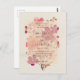 Carte Postale Pressé rose rouge et crème, Mariage floral Invitat