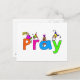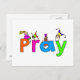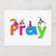 Belle illustration de dessins animés de jeunes garçons et filles heureux et divers escalade sur des lettres géantes de l'alphabet qui épelent le mot PRAY. Image disponible sur divers cadeaux et produits. Cartes postales.