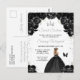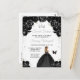 Cette invitation d'anniversaire sweet sixteen élégante et glamour présente une belle princesse aux cheveux blonds vêtue d'une robe noire. Le texte combine une écriture manuscrite et des polices modernes sans serif pour un look classe et sophistiqué. Les arrangements floraux, le papillon et les confettis argentés créent le mélange parfait de rustique et de chic.
