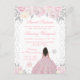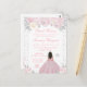 Cette élégante et glamour invitation d'anniversaire pour un sweet sixteen d'hiver présente une belle princesse aux cheveux bruns et à la peau foncée dans une robe de bal rose. Le texte combine une écriture manuscrite et des polices modernes sans serif pour un look classe et sophistiqué. Les arrangements floraux, les flocons de neige et les confettis argentés créent le mélange parfait de rustique et de chic.