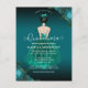 Cette élégante carte d'invitation postale Quinceañera présente une fille en robe sarcelle avec des accents floraux sarcelle et or. Le dos présente des accents de bouquet de roses sarcelle et or. Facile à personnaliser en cliquant sur "Personnaliser".