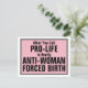 Carte Postale Pro-Life est une naissance forcée anti-femme