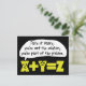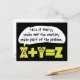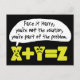 Nos petits personnages de maths font un jeu de mots idiot. Profitez de X Y et Z sur cette drôle de carte postale Problem.